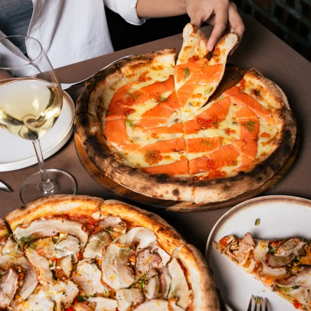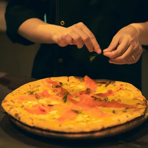 Our state-of-the art pizza oven enables us to cook pizzas to perfection with its rotating oven floor, ensuring even heat transfer.